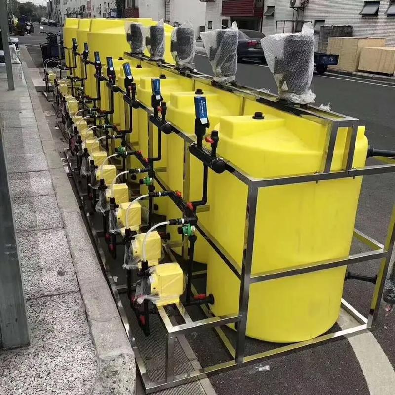 加药装置设备主要由药剂箱、药泵、药剂管道等组成。药剂箱用于存储所需的化学药剂,药泵负责将药剂从药剂箱中抽出并输送到加药点,药剂管道则负责将药剂均匀地加入到待处理的水体中